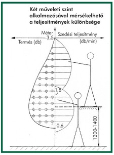 A munkaszervezéskor figyelembe kell venni, hogy a koronaszintek között eltérő a termés mennyisége. A szedési teljesítmény a szintenként eltérő berakódottság és a szedő testmagassága szerint is változik, utóbbi az elfáradással áll szoros összefüggésben. Ezekhez az adottságokhoz különböző emelvénytípusokkal alkalmazkodhatunk. A teljesítménycsökkenés az emelvények megmászásából, illetve a különböző típusok korlátozott mozgásteréből ered. A talajszinten végzett munkához hasonlóan a vízszintes mozgásra lehetőséget adó platós szedőállvány a felső szinten is javítja a munkakörülményeket. Ily módon két műveleti szint kialakításával mérsékelhetők az átlagon aluli teljesítmények különbségei.