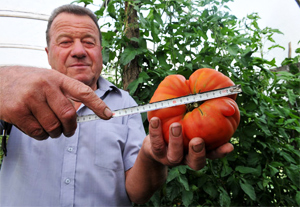 Schöllei József, hetvenegy éves, szerény nyugdíját egészíti ki a kertészkedéssel, néhány éve meghalt a felesége azóta egyedül gondozza a kertet, mégpedig példásan. A több mint negyedszázad alatt most szüretelte le a legnagyobb paradicsomot aminek egy kiló húsz dekagramm a súlya, a kerülete negyvennyolc centiméterre jött ki.