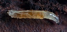 Az apró nyüvek csoportosan rágnak a zöld burkokban és sötét ürülékükkel maradandóan elszínezik a dió csonthéját. A nedves időjárásban rothadásnak induló baktériumosan fertőzött, de még puha csonthéjú diók belsejébe is behatolnak és a magkezdeményen táplálkoznak. A kifejlett nyüvek 3-4 mm-esek, vékony bőrük alatt jól látszanak a belső szerveik és barnás béltartalmuk. Testük végén, a farlapjukon két jellegzetes, csapszerű kinövést viselnek.