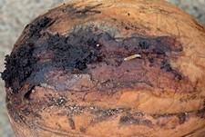 Az idén a dió virágzása idején erős éjszakai szállított fagy után a termős és a porzós virágok is megfeketedtek a fákon, végül mégis közepes termés lett. Az érés idejére azonban a termésnek csak egyötöde maradt egészséges, a negyede almamolyos, és több mint a fele baktériumos fertőzés áldozata lett. A lehullott diók 68 százalékában a Polyodaspis ruficornis lárvái fejlődtek ki a burokból táplálkozva, a csonthéjat ürülékükkel szennyezték és lemoshatatlanul megfeketítették. Erős baktériumos fertőzés, vagy almamoly- károsítás nyomán a dió belsejébe is behatoltak, ott táplálkoztak és bábozódtak is. Az esetleges élősködésüket az almamoly-hernyókon eddig nem sikerült megfigyelni.