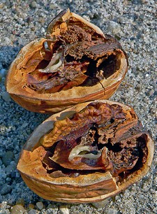 Telelésre a diófa mély kéregrepedései kínálnak biztonságos helyet, ahol vastag szövésű gubót szőve tavaszig meghúzódnak.