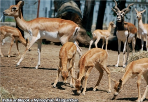 Az indiai antilop (Antilope cervicapra) nem olyan régen még az állatkertekben is ritkán fordult elő. Nagy szenzációt jelentett, amikor a Budapesti Állatkert 1974-ben Németországból hozzájutott három példányhoz. Ezt követően – talán egy évtizeddel később – Pécsre is került egy kisebb csapat, ma pedig már majdnem minden állatkertben találkozhatunk velük, s mindenütt szépen szaporodnak is. Nyíregyházán társbérlőket is kaptak; három hatalmas indiai elefánttal osztják meg férőhelyüket. (…)
