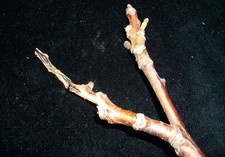 A patogenitás igazolásához alkohollal fertőtlenített fiatal dióhajtásokat és dióterméseket használtunk. A kórokozó 24 órás tiszta tenyészetéből steril desztillált vízzel baktériumszuszpenziót készítettünk, melyet a hajtás csúcsától számolt 2. teljesen kifejlődött levél hónaljába, valamint a zöld diótermés külső burkába, az epikarpiumba juttattunk be injekciós tűvel. A kontrollhajtást és -ter mést desztillált vízbe már tott tűvel szúrtuk meg. Mind az inokulált, mind a kontroll mintákat 24-26 °C-on steril műanyag dobozban tartottuk. A megfelelő páratartalomról nedves szűrőpapírral gondoskodtunk. Az eredményeket a hajtások esetében a fertőzést követően 1 hónappal, míg a terméseknél 10 nappal értékeltük.