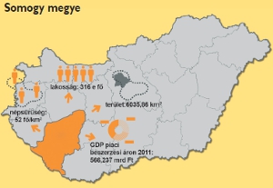 Somogy változatos természeti adottságai – tájegységei közé tartozik a kiváló mezőgazdasági adottságokkal bíró Mezőföld, a Kapos-völgye, de a mezőgazdasági termelés hatékonysága szempontjából halmozottan hátrányosnak nevezhető Zselicség és a Somogyi-Homokhát is – ellenére az ország legritkábban lakott megyéje. Több kistérsége a leghátrányosabb helyzetűek közé tartozik. A 2011-es népszámlálás adatai szerint az előző évtized 19 ezer fős népességfogyása teljes egészében természetes fogyásból adódott az ország ötödik legnagyobb megyéjében. Az aprófalvas településszerkezet, az elöregedő népesség, illetve a somogyi könnyűipar rendszerváltás utáni leépülése csak súlyosbította a lemaradást. A gazdasági, társadalmi és infrastrukturális mutatók alapján a 245 somogyi településből 160 támogatásra szorul. Az egyik legfőbb megélhetési lehetőség a mezőgazdaság a 2013 első negyedévi adatok szerint 11 százalékos munkanélküliségi rátával küzdő megyében. A 2011-es KSH-adatok szerint a megyében előállított bruttó hozzáadott érték (GDP) 11,2 százalékát a mezőgazdaság, a vad- és erdőgazdaság és a halgazdaság ágazat adta. (…)