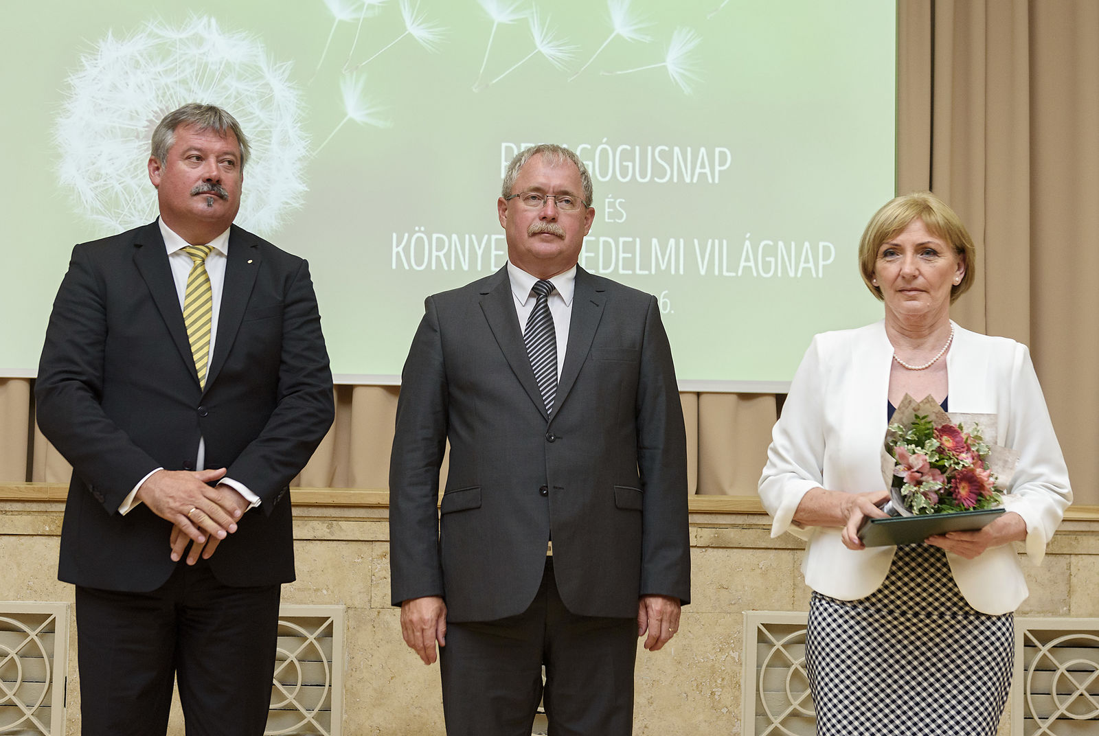 Miniszteri Elismerő Oklevelet kapott Annus Anita, a Székács Elemér Mezőgazdasági és Élelmiszeripari Szakképző Iskola és Kollégium tanára két évtizede a fiatal generációk környezettudatos, egészségtudatos szemléletének kialakításában végzett kimagasló pedagógiai tevékenységéért; Barabás Adrienn, a Pest Megyei Kormányhivatal Környezetvédelmi és Természetvédelmi Főosztály kiemelt jogi szakügyintézője a környezetjog alkalmazása terén nyújtott kimagasló teljesítményéért, a hatósági és bírósági eljárásokban tanúsított magas színvonalú perképviseletért; Bodnár Gáspárné, a Szabolcs- Szatmár-Bereg Megyei Kormányhivatal Nyíregyházi Járási Hivatal Környezetvédelmi és Természetvédelmi Főosztály igazgatási szakügyintézője több évtizedes kiemelkedő, magas színvonalú és lelkiismeretes titkársági, igazgatási munkájáért; Farkas Anna, a Herman Ottó Intézet Nonprofit Kft. Környezetvédelmi és Természetvédelmi Igazgatóság osztályvezetője a természettudományos kiadványok készítésében, az ökológiai szemléletformálásban és a GRASSLAND-HU LIFE pályázatban nyújtott kimagasló teljesítményéért; Fieder Ildikó, a Földművelésügyi Minisztérium Hulladékgazdálkodási Főosztály hulladékgazdálkodási referense a környezetvédelmi termékdíj szabályozás és a gazdasági ösztönző rendszerek felülvizsgálatában, koordinálásában végzett kiváló tevékenységéért; Ilyés Edit, a Herman Ottó Intézet Nonprofit Kft. Környezetvédelmi és Természetvédelmi Igazgatóság környezetvédelmi referense a környezetvédelmi szemléletformálásban, a klímavédelmi projektek lebonyolításában, kiadványok készítésében és a HungAIRy LIFE pályázatban nyújtott kimagasló teljesítményéért; Kemencei Zita, a Herman Ottó Intézet Nonprofit Kft. Környezetvédelmi és Természetvédelmi Igazgatóság referense a szakmai kiadványok készítésében, a szemléletformáló tevékenység területén és a GRASSLAND-HU LIFE IP pályázat összeállításában nyújtott kimagasló teljesítményéért; Kristóf Teodóra Fáta, a Földművelésügyi Minisztérium Hulladékgazdálkodási Főosztály környezettechnológiai referense a környezettechnológia területén a higanyról szóló Minamata Egyezmény elfogadásában, a hazánkat érintő feladatokban, és azok koordinálásában végzett kimagasló tevékenységéért; Mátai Balázs, a Herman Ottó Intézet Nonprofit Kft. Környezetvédelmi és Természetvédelmi Igazgatóság környezetvédelmi referense a szemléletformáló tevékenységben, a klímavédelmi projektekben, a szakmai kiadványok készítésében és a HungAIRy LIFE pályázatban nyújtott teljesítményéért; Nemes Mariann, a Földművelésügyi Minisztérium Környezetfejlesztési és -stratégiai Főosztály fejlesztéskoordinációs referense a határon átnyúló környezetvédelmi programokban, az Európai Környezetvédelmi Ügynökség együttműködésében végzett kiváló tevékenységéért; Paulik Szabina, az Országos Meteorológiai Szolgálat Éghajlati és Levegőkörnyezeti Főosztály Levegőtisztaság-védelmi Referencia Központ levegőtisztaságvédelmi szakértője a levegőkörnyezeti akkreditációs eljárásokban nyújtott kiemelkedő tevékenységéért, nemzetközileg is elismert munkájáért és Szentesi Szilvia, a Földművelésügyi Minisztérium Hulladékgazdálkodási Főosztály környezettechnológiai referense a hulladékgazdálkodási szakterületen, a Környezetvédelmi Végrehajtási Felülvizsgálattal kapcsolatos feladatok végrehajtásában végzett kimagasló tevékenységéért, koordinációs munkájáért.