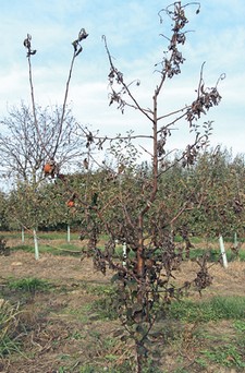 A tűzelhalás (Erwinia amy­lovora) főleg az almatermé­sűeket, de a csonthéjasokat és a málnát is megfertőzheti. A kórokozó a beteg, de még élő vesszőkön telel át és a fertő­zés tavasszal, nedves, meleg időben a nektáriumokon, sztó­mákon (gázcserenyí lá so kon), lenticellákon (paraszemöl csö­kön), valamint bármilyen szö­vetsérülésen keresztül is be­következhet. A betegség el­terjedésében nagy szerep jut a rovaroknak, a madaraknak, a szélnek, valamint az esőnek is. A fertőzést követően a bak­tériumok a háncsban terjed­nek. Jelenleg a védekezés a beteg hajtások eltávolításából (30 cm­-es biztonsági csonkkal) és elégetéséből, valamint 2 szá­zalékos réztartalmú szert tar­talmazó diszperziós festékkel végzett sebkezelésből áll. A szerszámok fertőtlenítése fel­tétlenül ajánlott 70 százalékos denaturált szeszben vagy 10 százalékos nátrium­hipoklorit­ban. A gyümölcsfákat április elején és a vége felé, majd a júniusi gyümölcshullást, vala­mint a szüretet követően ke­zeljük réztartalmú szerekkel.