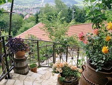 Ölyv köröz a csendes völgy fölött, szemben a budai hegyek koszorúja. Nagykovácsi hajdani szőlődombján kaptató utca meredek telkén áll a ház, fölötte már az erdő zöldell. A kert azonban csupa szín, szépen művelt zöldségágyások, sziklakertek, tarka évelők, rózsabokrok, virágzó díszcserjék szőttesében terméskő lépcső kanyarog a teraszok között. A köríves felső teraszt szőlőlugas árnyékolja, a magasból széles panoráma nyílik a tájra. Ebbe a látványba szeretett bele Nikola, mikor hozzáfogott az építkezéshez.