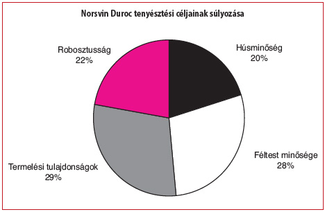 A színhús százalék és a húsminőség közötti teljes mértékben negatív korrelációnak köszönhetően a színhústartalom növelésével könnyedén le tudnák rontani a Norsvin Duroc húsminőségét. Éppen ezért a húsminőség a múltban is és a jövőben is fontos helyen szerepel a tenyésztési célok között.