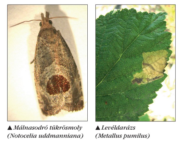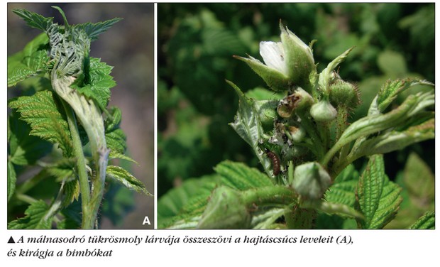 A málnasodró tükrösmoly minden évben megjelenik az ültetvényben, a lárvák a fiatal hajtásokat és sarjakatösszesodorják, összegubancolják. A virágokat is megrágják, kiodvasítják.