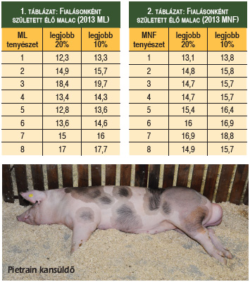 Az MFSE kimutatása alapján az elmúlt három évtizedben a magyar nagyfehér fajtában az átlagos alomnagyság 9,95 ± 2,70 malac volt, magyar lapályban 9,98 ± 2,26. Ez a szám a kocánként, évente 30 hízót kibocsátó korban nem túlzottan biztató, viszont pozitív irányban árnyalja a képet, hogy a legjobb nyolc magyar lapály tenyészetben az 1. táblázat szerinti reprodukciós mutatókkal találkozhattunk. A magyar nagyfehér tenyészetek adatait a 2. táblázat tartalmazza. (Az adatok a MFSE szakmai előadásából származnak: „A sertéstenyésztés céljai” Eicher József ügyvezető igazgató 2014.)