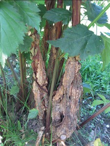 A leptoszfériás szártőbeteg ség a bélszövetig terjedő bar nulást okoz a vesszőkön, az edénynyalábok eltömődnek, a vessző tövénél a kéreg fölre ped. A szállítószövetek káro sodása pedig a vessző hervadásához, elszáradásához vezet. A kórokozó gomba (Leptosphaeria coniothyrium) sebeken keresztül fertőz, a be tegség megelőzésére minél rövidebb csonkkal metsszünk. Mindenképpen érdemes figyelni arra, hogy a szőlő bakműveléséhez hasonló tőkefej, ne ágasbogas, sok beszáradt részt tartalmazó tő alakuljon ki a szedernél is. Rügypattanástól rezes permetezéssel, később kontakt szerek kom binációjával lehet permetezni a betegség ellen. Fontos, hogy szüret után is védjük a növényeket a fertőzéstől.