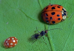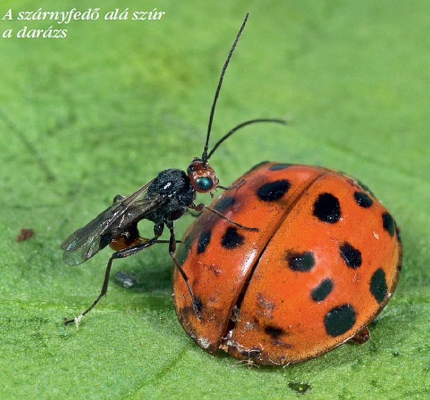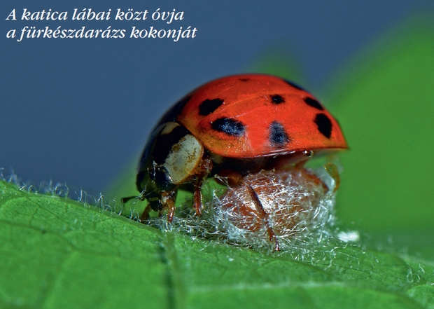 A katicabogár gondtalanul élhetne, ha a fürkészdarázs is figyelembe venné a veszélyjelzést. A nőstény katica-gyilkosfürkész (Dinocampus coccinellae) azonban rászáll és tojócsövével a kemény fedőszárnyak alá nyúlva villámgyorsan rak egy petét az áldozatába.