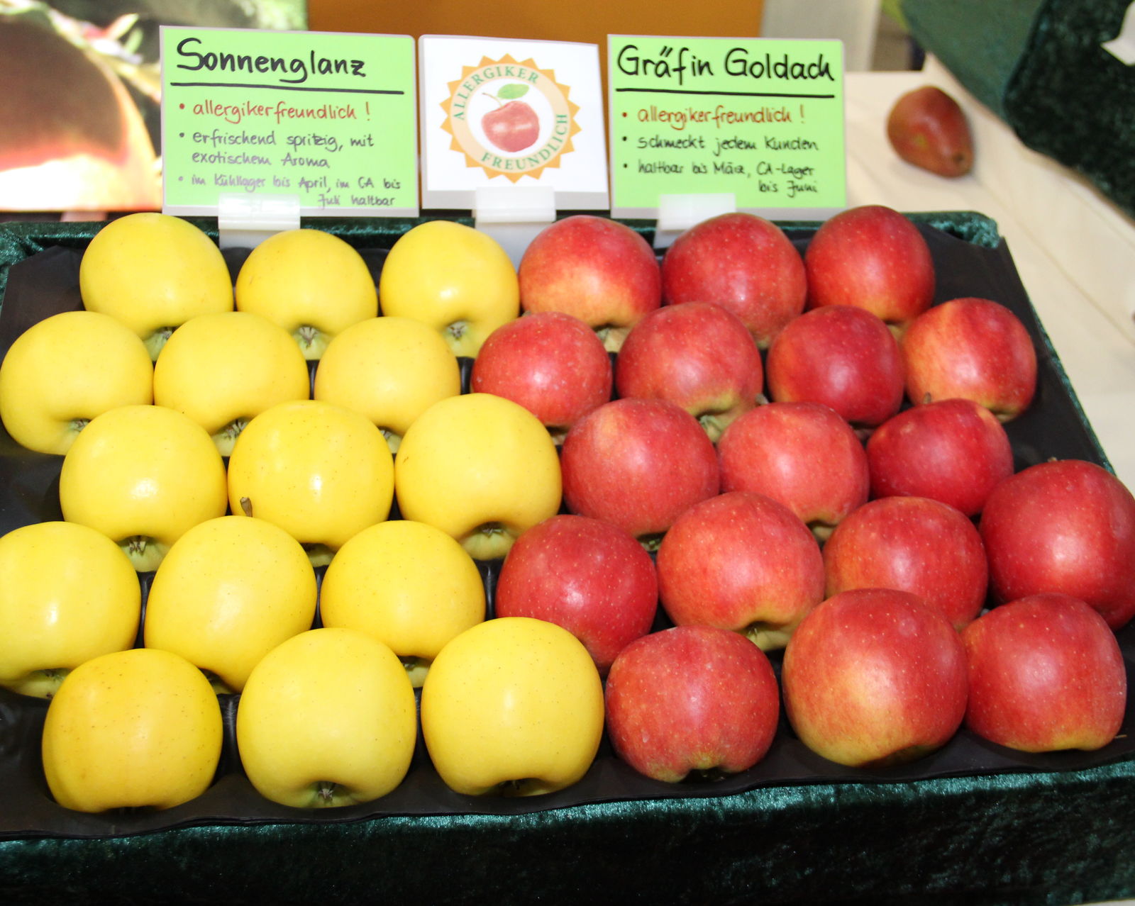 Németországban 8 százalékra teszik az almaallergiások számát, ezért a Bajor Gyümölcs Központban (BayOZ) már kinemesítették azokat az új fajtákat, amelyeket mindenki bátran fogyaszthat. Az Interpoma szakvásáron mutatták be az újdonságokat.