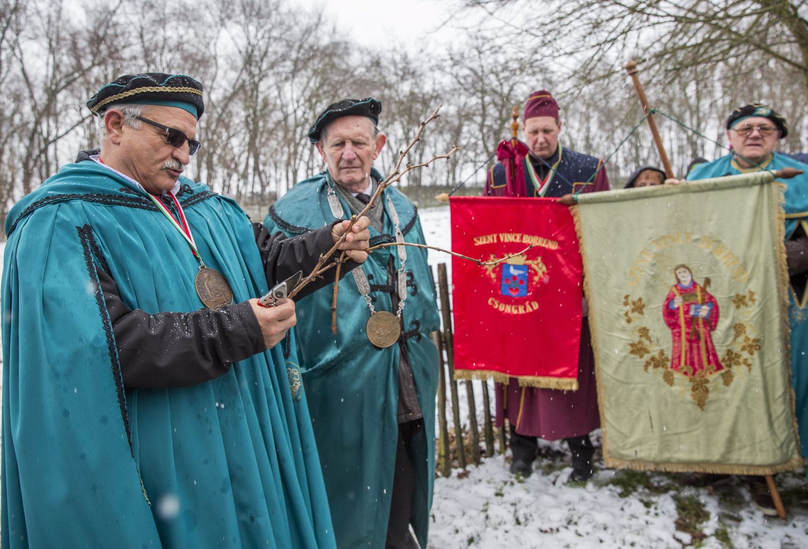 Szent Vince ünnepe alkalmából immár huszonötödik alkalommal gyűlt össze 15 Kárpát-medencei borrend képviselője Ópusztaszeren. A termésjóslást követően fölavatták a házigazda, Csongrád és Békés megyében működő Szent Vince Borrend két új tagját, Győri Tibort és nejét. Az avatást megelőző próbatételen többek között bekötött szemmel föl kellett ismerniük a borrend zászlósborát, a csongrádi cabernet franc-t.