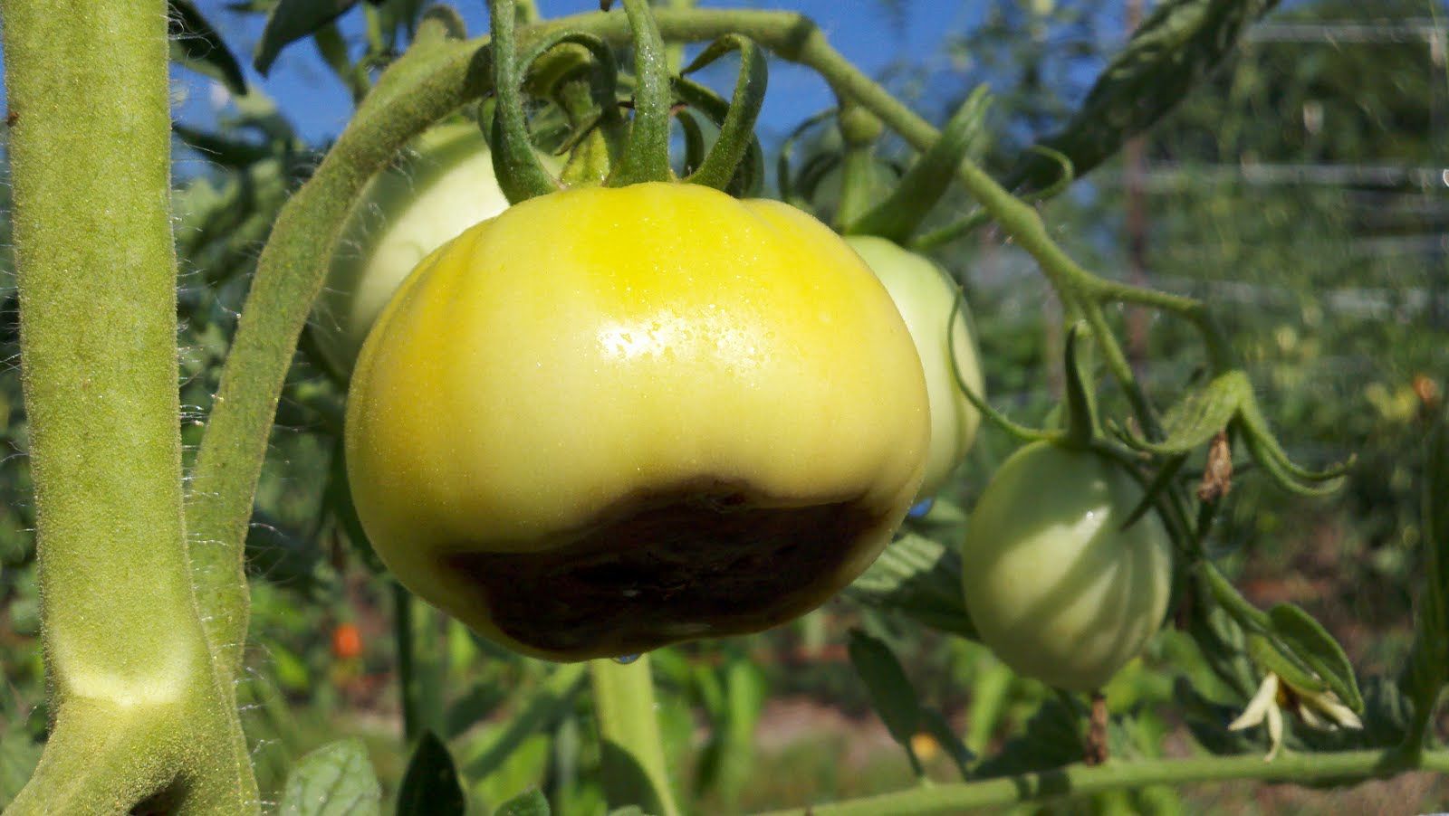Fekete, beszáradt csúcsú bogyókat is találhatunk a töveken, ami egy élettani betegség, a kalciumhiány jele. Általában az első bogyókon alakul ki, illetve nagy melegben nő meg a veszélye, mert a paradicsomnövény nem tud elegendő kalciumot fölvenni a talajból.