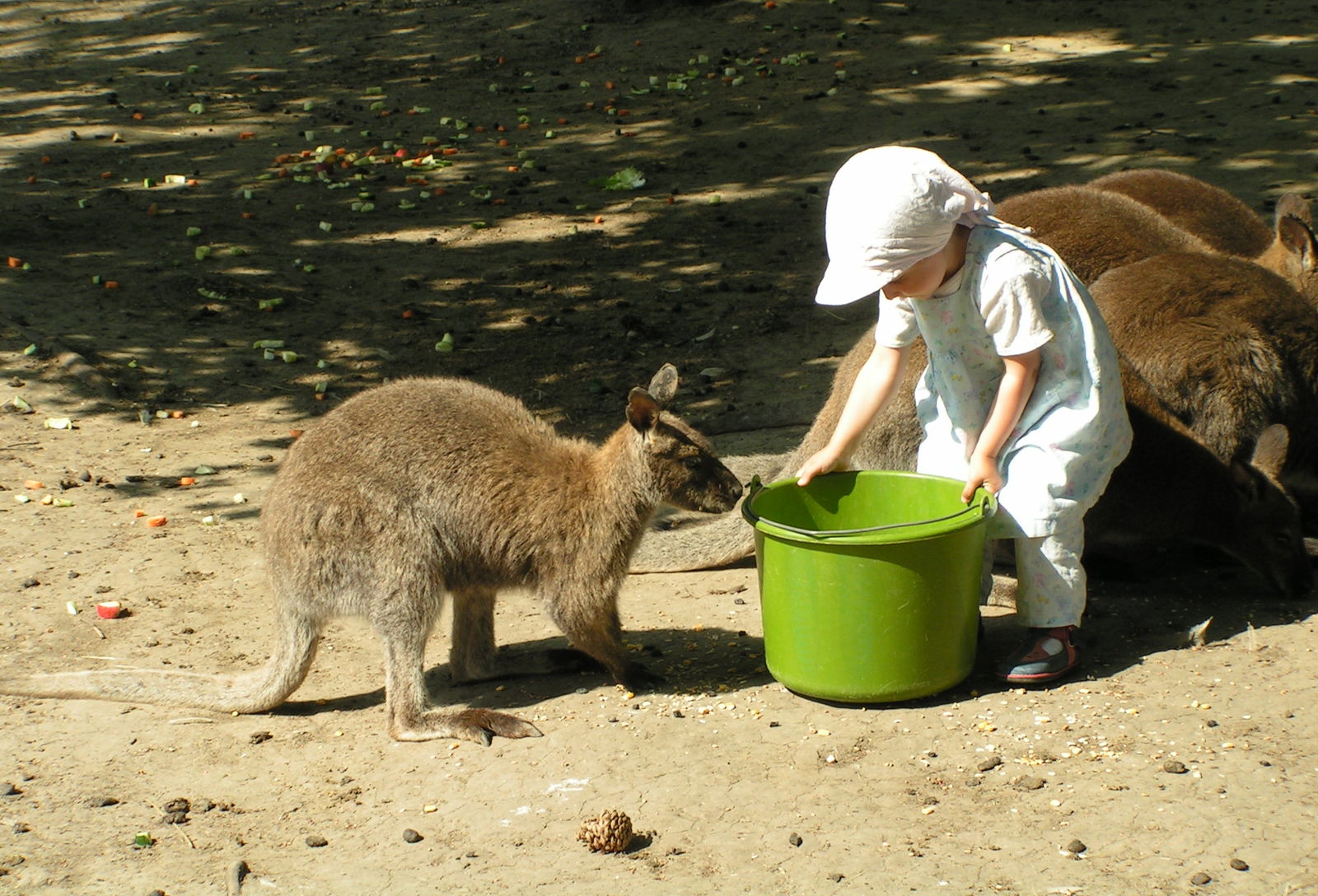 Takarmányozásuk sem ördöngösség: leginkább fűféléken és lágyszárú növényeken tarthatók, de emellett főtt burgonyával, almával, répával és egyéb zöldségfélékkel, főtt rizzsel tápláljuk erszényesünket. Óvakodni kell a zab és a kemény széna etetésétől, mivel ezek gyakran okozói az úgynevezett kenguruk állkapocsbetegségének, mely nálunk is megtizedelheti az állományt.