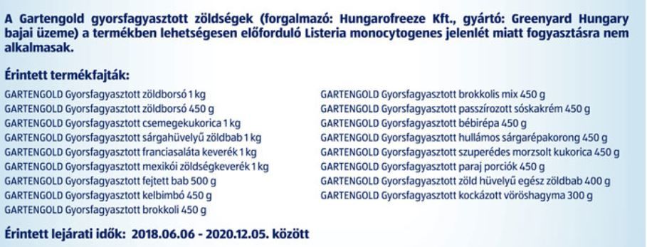 Nagy Attila szerint a gyártó Greenyard vállalat magyarországi készlete önmagában több ezer tonna volt. Ebből kaptak a nagy áruházláncok, amelyek már visszahívták a zöldségeket.