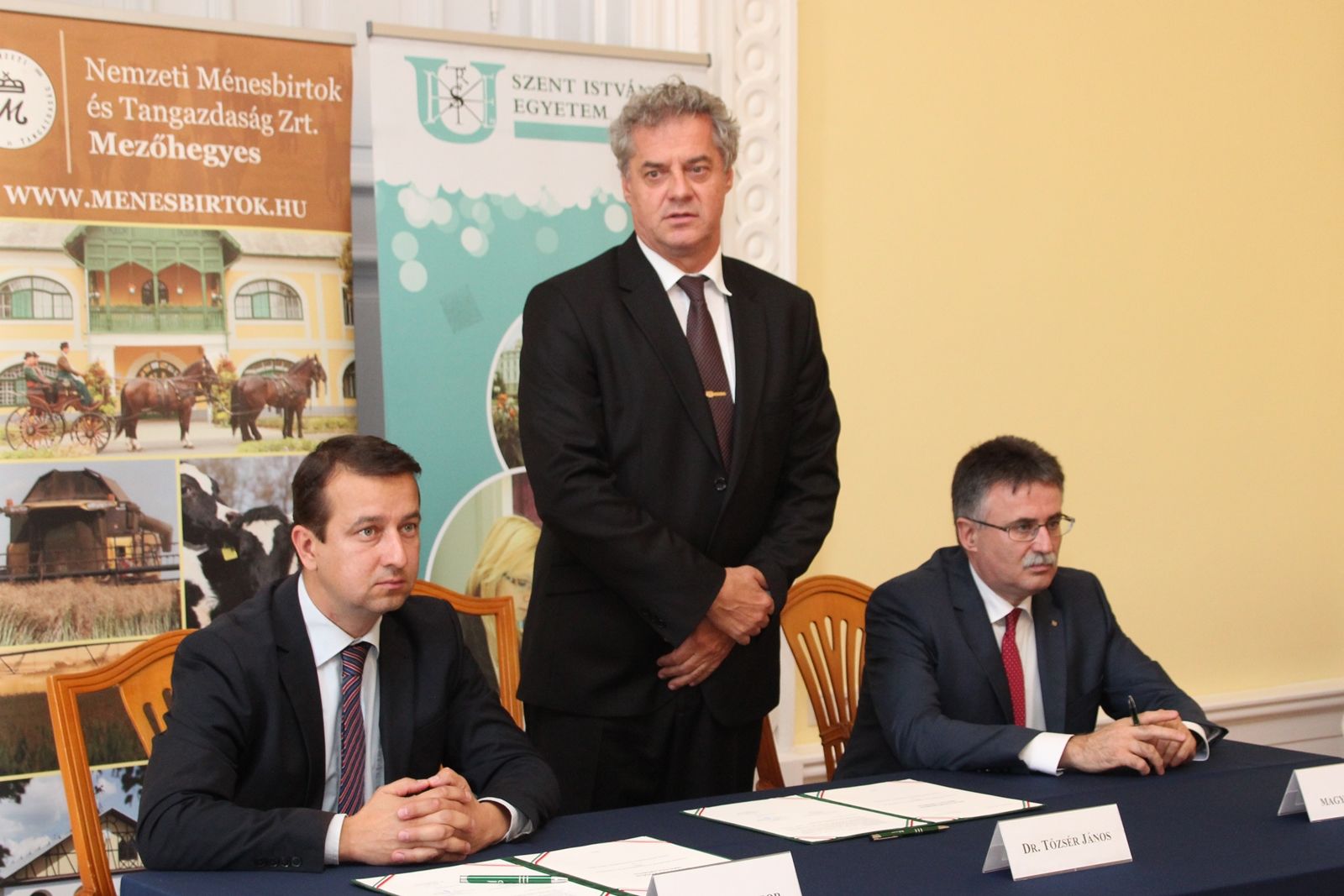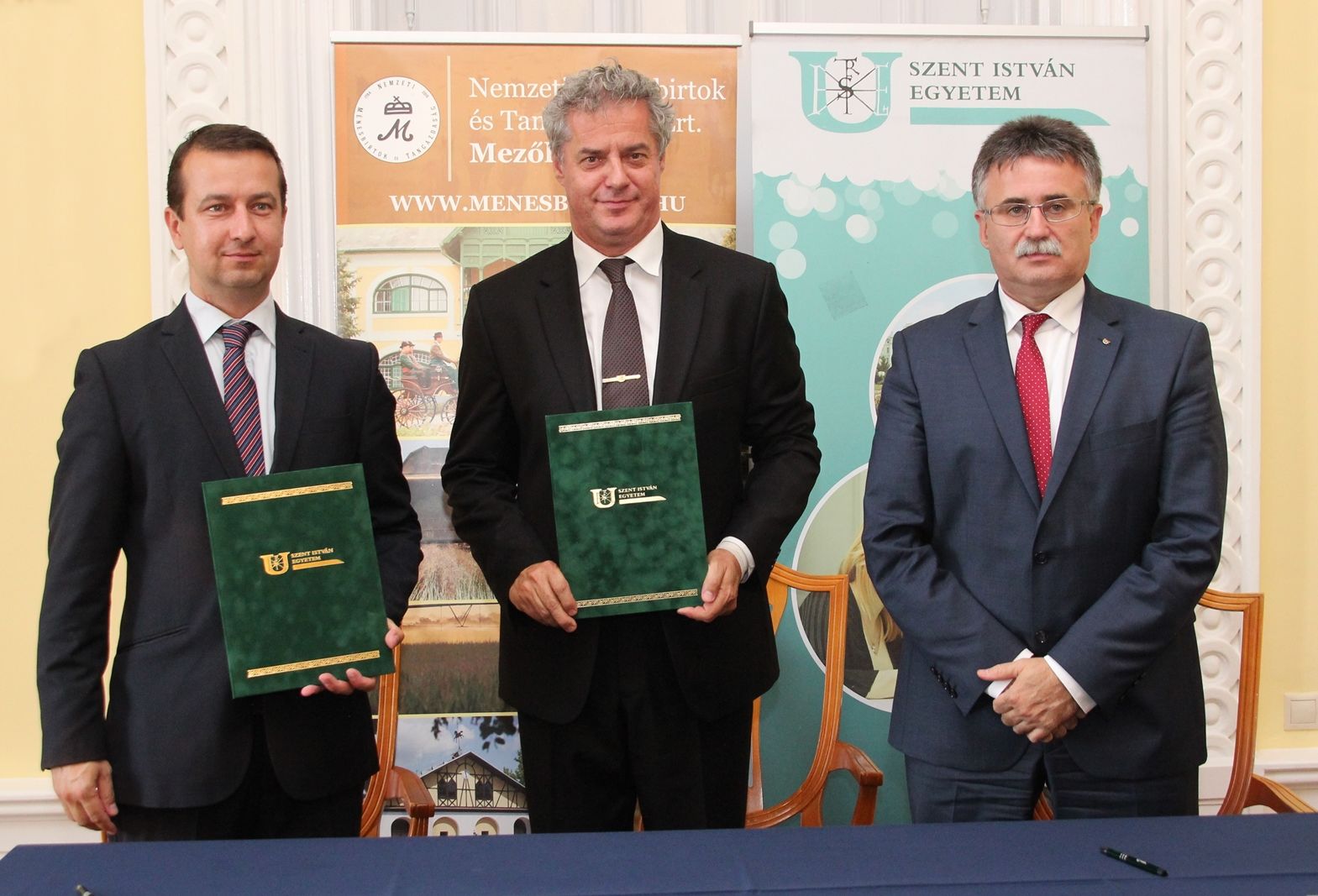 Az együttműködési megállapodást Pap István, a Nemzeti Ménesbirtok és Tangazdaság Zrt. vezérigazgatója, Dr. Tőzsér János, a Szent István Egyetem (SZIE) rektora és Magyar Ferenc, a SZIE kancellárja látta el kézjegyével.