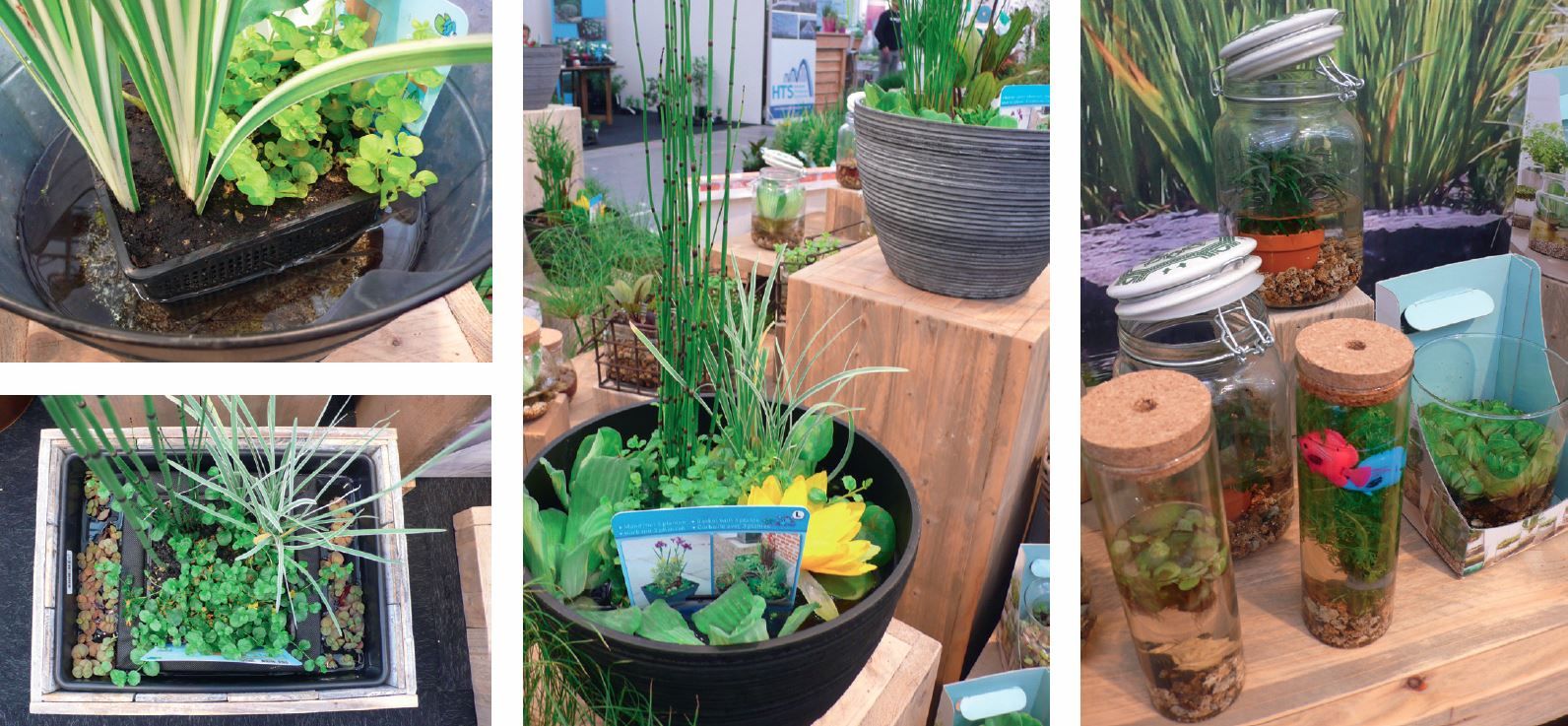 Akiknek se kertjük, se teraszuk nincs, ám mégis szeretnék vízinövényekkel körülvenni magukat, most egyedi megoldásokat mutatnak. Egy részük nem is igazán egyedi, hiszen a kereskedelemben kapható, kommersz üvegtartókról van szó. Akinek pedig valamivel több a helye, annak kifejezetten erre a célra tervezett és gyártott, vízzel teletölthető műanyag virágtartót kínálnak, benne a vízinövényt tartalmazó betéttel. A növényekhez speciális növénytápot is kínálnak, a víz tisztántartása pedig egyszerű kiöntéssel–feltöltéssel megoldható.