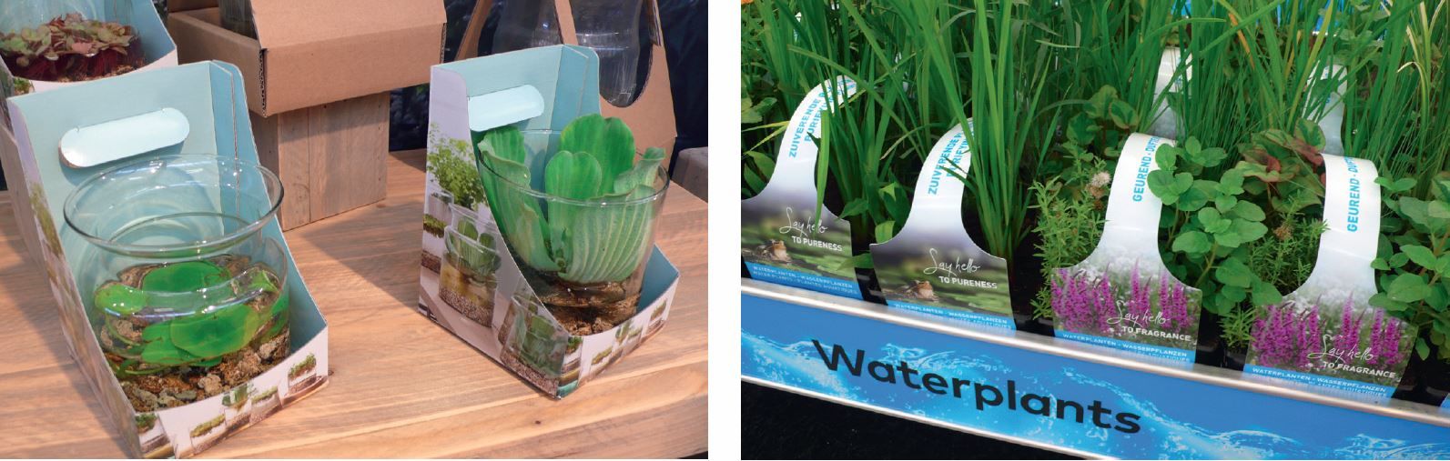 A Moerings holland vízinövény-termesztő vállalkozás évek óta új és ötletes megoldásokkal áll elő, hogy megkönnyítse a vízinövények értékesítésével foglalkozó kereskedők és vásárlóik dolgát. Előbbieknek speciálisan kialakított asztalt szerkesztettek, illetve olyan, vizet át nem eresztő dobozokat, konténereket terveztek és készítettek, amelyekben a vízinövényeket tárolhatják az értékesítésig. A feladat nem is egyszerű, hiszen a tartóedényben lévő víz állapotát a lehető legtovább egészségesen/tisztán kell megőrizni. A szállítás során adódó feladatokról nem is beszélve.