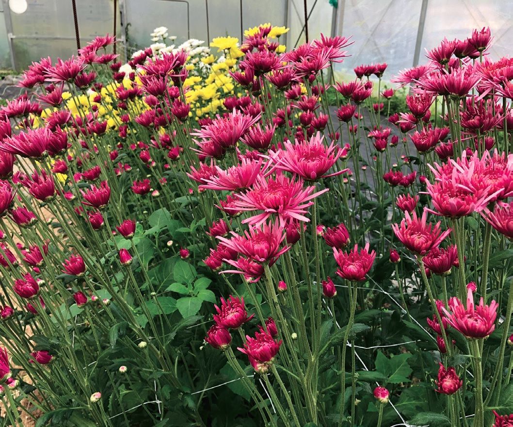 – Aztán a növények sora mindig bővült egy kicsit, főleg ahogy közeledett a tavasz. Egynyári virágok – köztük a muskátli – „költöztek” a fóliánkba, a mi és – nyugodtan mondhatom – a helyiek és környékbeliek nagy örömére. De természetesen mással is próbálkoztunk, például vinkával, büdöskével, begóniával, aztán az árvácskával, hogy legyen megfelelő kínálat őszre is. A tapasztalatok és az igények alapján jócskán kibővítettük a krizantémok sorát.