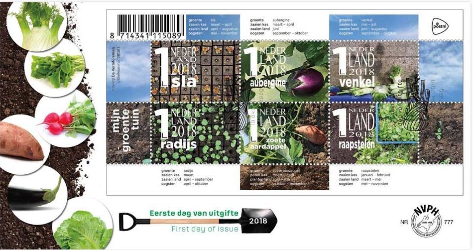 Hol máshol, mint Hollandiában, a professzionális zöldségtermesztés egyik legrégebbi bölcsőjében lepte volna meg a bélyeggyűjtőket a posta egy zöldséges bélyegsorozattal karácsony alkalmából. Hatféle zöldség került a bélyegekre: tölgylevelű saláta, padlizsán, édeskömény, retek, édesburgonya, és egy nálunk nem igazán ismert levélzöldség.
