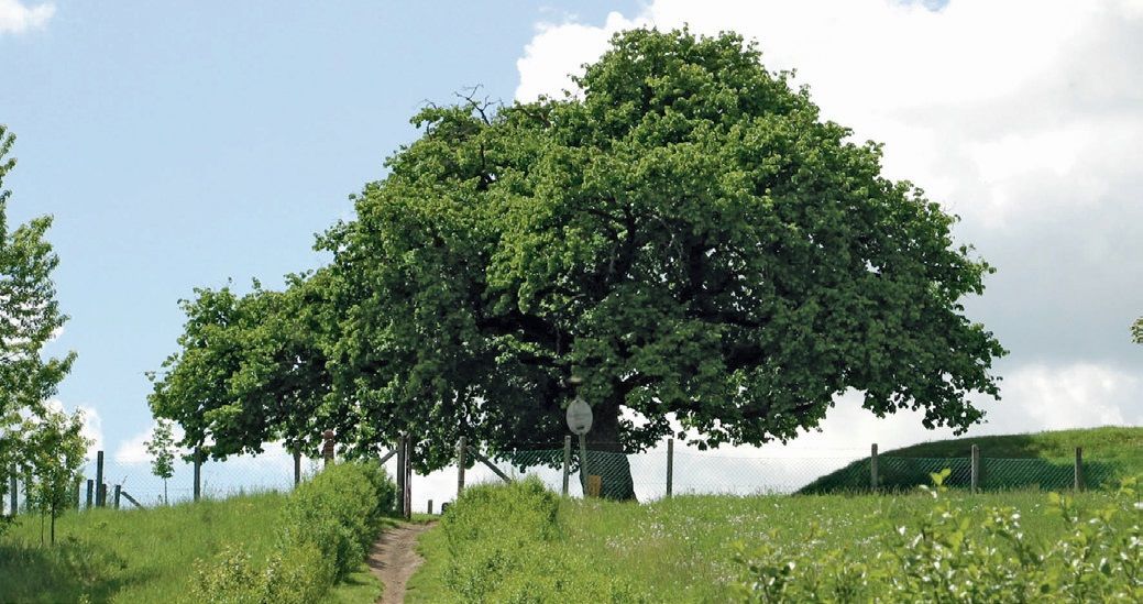 Nagytermetű fafaj (25-30 m), koronája szabad állásban széles, gömb-félgömb alakú, kérge barázdált, világosszürke. Levelei nagyok, 10-20 centiméter hosszúak és 4-12 centiméter szélesek, visszás tojásdadok, erősen tagoltak. A mély karéjokon gyakran 1-3 mellékkaréj is megfigyelhető. Levélválla cimpás, a levelek majdnem ülők, gyakran szárölelők. Levéllemeze vékony, fölül kopaszodó, élénkzöld, fonákján eleinte vörösesbarnán gyapjas, később kopaszodó.