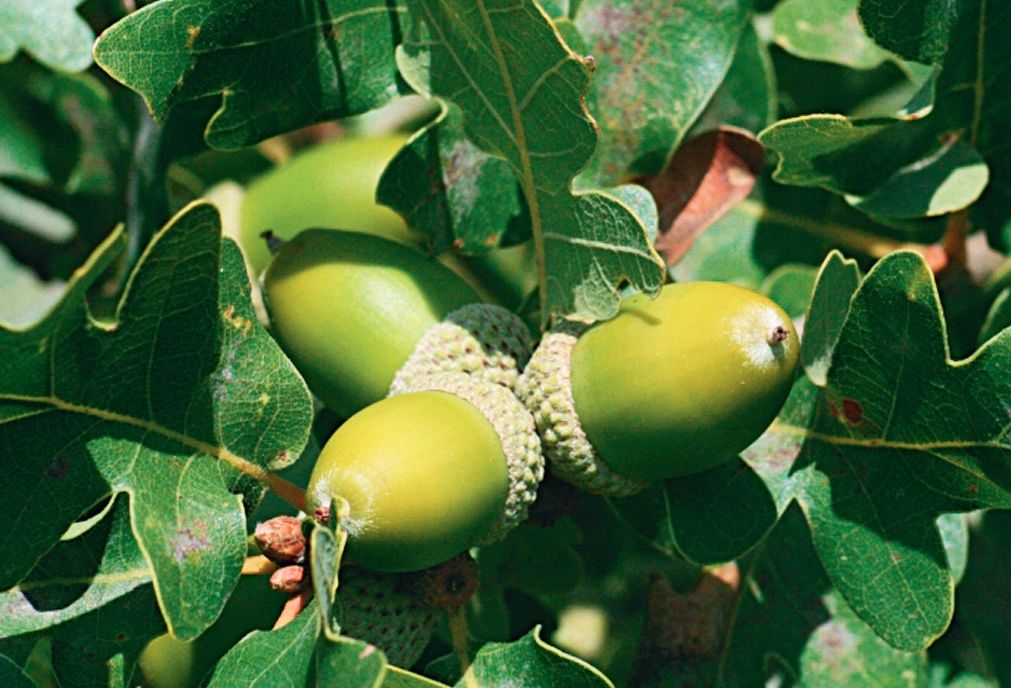 Termése sokkal kisebb, mint az ismertebb tölgyeké, de azoknál gyakrabban és többet terem. A tojásdad, alig egy centiméteres, finoman pelyhes kupacspikkelyű makkok már az első évben beérnek.