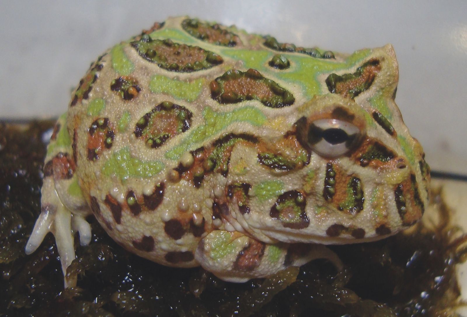 Fogságban elsősorban a Ceratophrys ornata és a C. cranwelli fajokat, illetve valószínűleg ezek hibrideit tartják. Mindkét faj nagyjából tenyérnyire növő, alapvetően szárazföldi életmódú, kis mozgásigényű állat. „Kedvenc” mélyedésük kialakításához biztosítsunk számukra valamilyen laza szerkezetű, jó víztartó talajt. Például földet és mohát. Álljon rendelkezésükre egy nagyobb gyökér vagy egyéb fedezék, amely alá behúzódhatnak a fény elől.