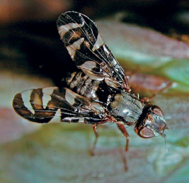 A rovarok közül a spárga legnagyobb ellensége a spárgalégy (Platyparea poeciloptera), amelynek kártétele az első-második évben a legjelentősebb, de később sem elhanyagolható. A fiatal telepítések gyorsan kiritkulnak, az idősebbek terméshozama csökken. A jellegzetes keresztsávokkal díszített szárnymintázatú legyek április közepén, május elején észlelhetők, de rajzásuk június közepéig is elhúzódhat. Egy nőstény 60-80 tojást rak a hajtásokba. A 2-4 nap múlva kelő lárvák a hajtások belsejében lefelé menő járatot rágnak a hajtás tövéig, ott visszafordulnak és felfelé haladnak.