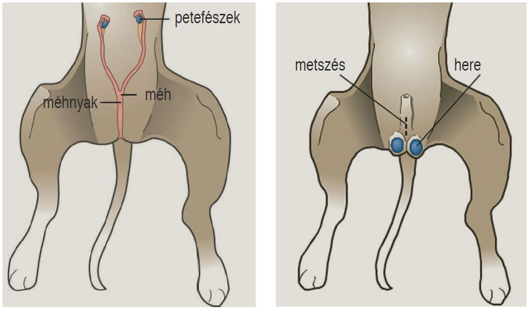 A petefészkek, illetőleg a herék eltávolítása visszafordíthatatlan folyamat, melynek esetenként káros mellékhatásai is lehetnek. A hím nemi hormont a here, a női nemi hormont a petefészek termeli. Szukák esetében kivitelezhető a gyógyszeres fogamzásgátlás, illetve a vetéltetés is, ezek a beavatkozások azonban kockázatosak, nem csak egyszeri kiadással, továbbá az állatok számára kellemetlen tünetekkel járhatnak.