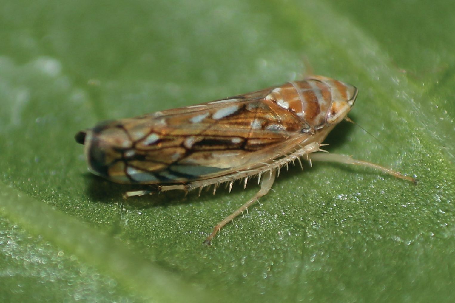 Magyar-országon 2004-ben találták meg az első példányokat. Házikertekben gyakran károsítja a szőlő leveleit, hajtásait, de a fürtkocsányon eddig csak olykor-olykor volt megfigyelhető. A tőkéken augusztustól fordul elő nagyobb tömegben. Az imágó 5-8 mm nagyságú, zavarásra pattanva menekül, majd szárnyra kapva elrepül. A lárvák a levelek fonákán, az erek mentén kolóniákban élnek és ott szívogatnak. Jelenlétüket a lárvákon lévő hófehér viaszszálak és viaszváladékuk jelzi. A lárvák zavarásra szintén pattanva menekülnek.