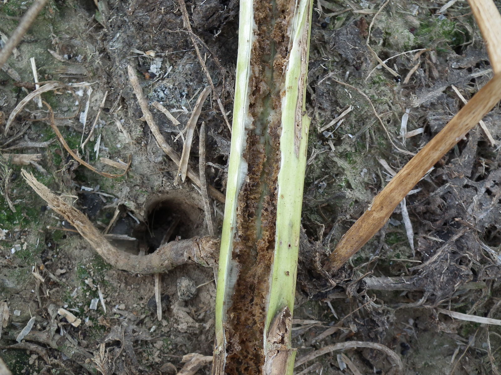 A nagy repceormányos (Ceutorhynchus napi) lárvái által odvasított repce szára (1-2. kép) kevesebb tápanyagot képes továbbítani a virágzat, majd a termés felé, így jelentős terméscsökkentő tényezőként kell számolni vele.