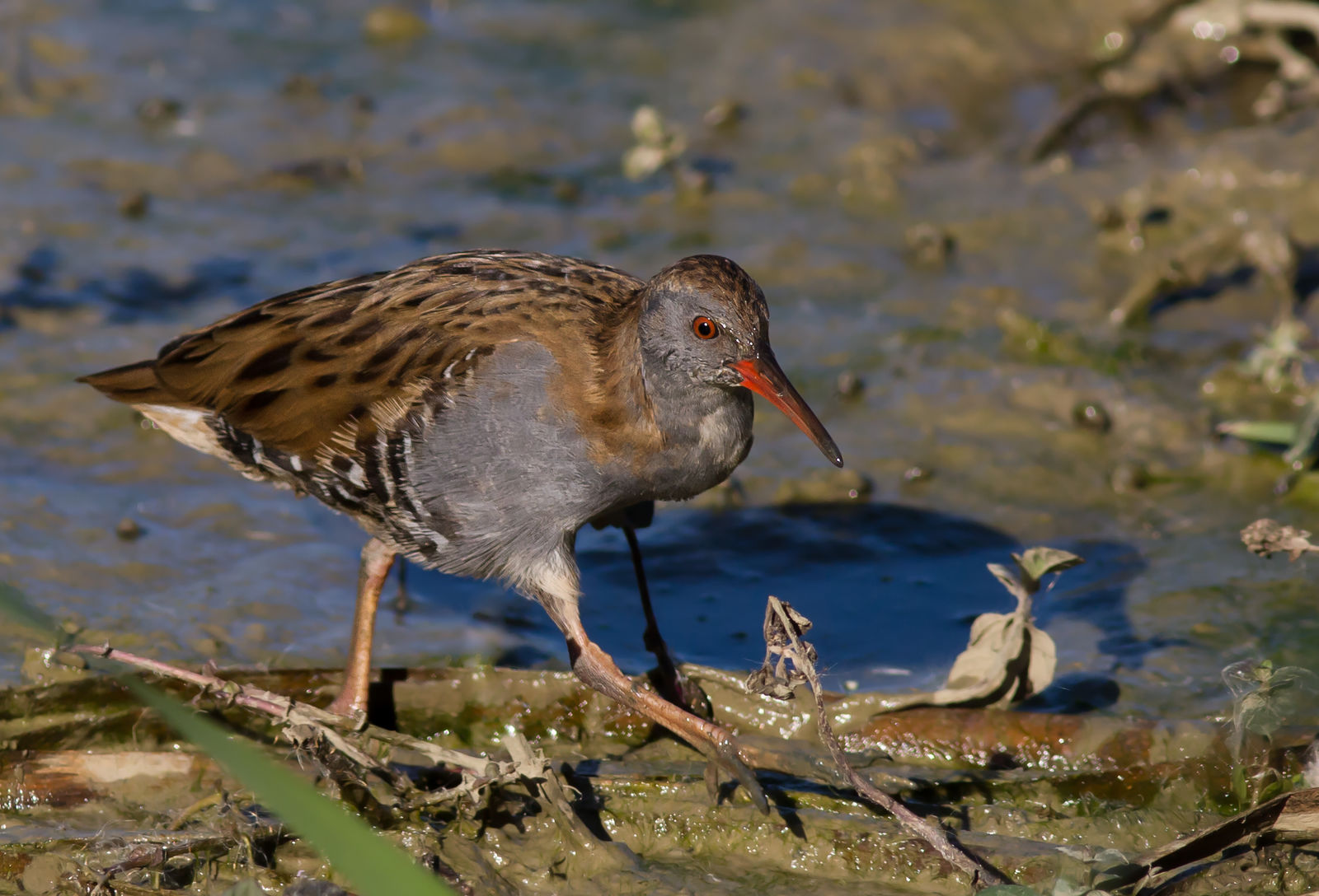 A Körös-Maros Nemzeti Park Igazgatóság munkatársai a napokban a Királyhegyesi-pusztán csordogáló Száraz-érben pillantottak meg egy, a vízi növényzet sűrűjéből előmerészkedő guvatot.