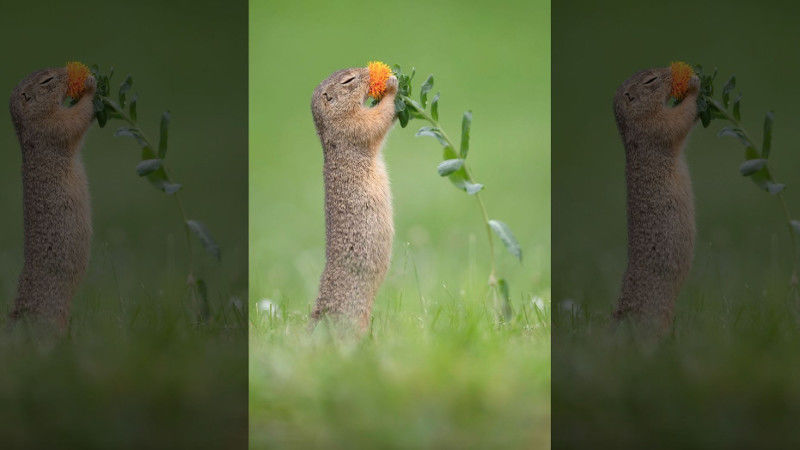 Renato Just nem az első, akinek sikerült megható képeket készítenie egy virágot szagoló ürgéről. Szeptemberben egy másik holland fotósnak, Dick van Duijn-nak is összejött. Elmondása szerint két órát töltött a fotózással és kétszáz képet készített, hogy elkapja a tökéletes pillanatot.