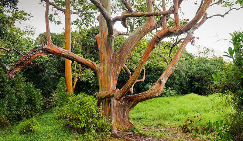 A világ legszínesebb fája, a szivárvány eukaliptusz (Eucalyptus deglupta) a mirtuszfélék családjába tartozik, leginkább a trópusi éghajlatot kedveli. Ez az egyetlen eukaliptusz fa, amelynek természetes elterjedési területe átnyúlik az északi féltekére.