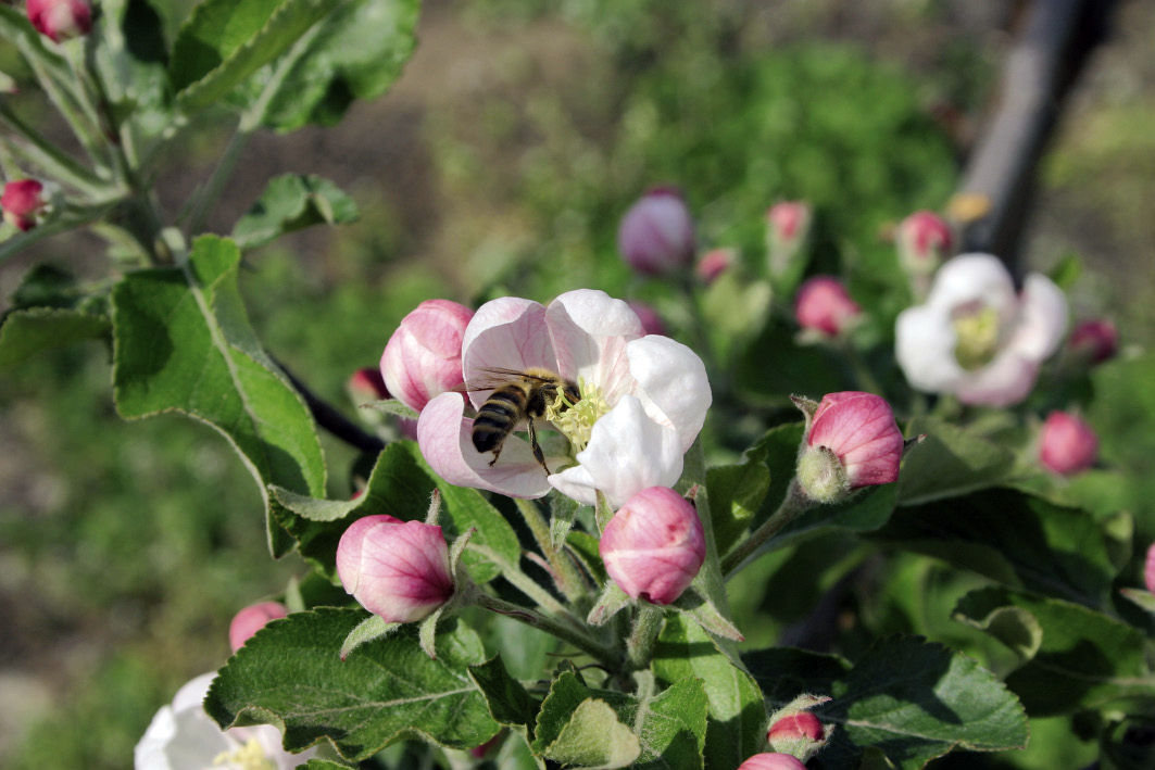 A virágritkítás azon alapul, hogy az alma bogernyő virágzatában a központi virág nyílik ki először, és utána a többi. Ha a központi virág megtermékenyült, a többire már nincs szükségünk, és az ATS Agro Flo segítségével leszárítjuk a bibeszárat ezekben a később nyíló virágokban. Meleg, száraz időben szerencsés elvégezni a kezelést, mert nedves levélen perzselést okozhat a szer. Az időzítéshez alaposan követnünk kell a virágzás lefutását: nulla napnak azt tekintjük, amikor a központi virágon elkezdenek száradni a porzók, a bibe pedig még él. Az ezekből a virágokból fejlődő almákat akarjuk megtartani. A további virágzás és a megtermékenyülés hossza rendkívül változó, az időjárástól függ. 2018-ban például 5 nap alatt lezajlott a virágzás, 1 évvel korábban viszont csak a pollencsírázás tartott 5 napig, mondott példát Szentpéteri Tamás. Tehát ha meleg van, a nulladik nap után, másnap vagy harmadnap kell kezelni, míg hűvös időben két-három további permetezésre is szükség lehet.