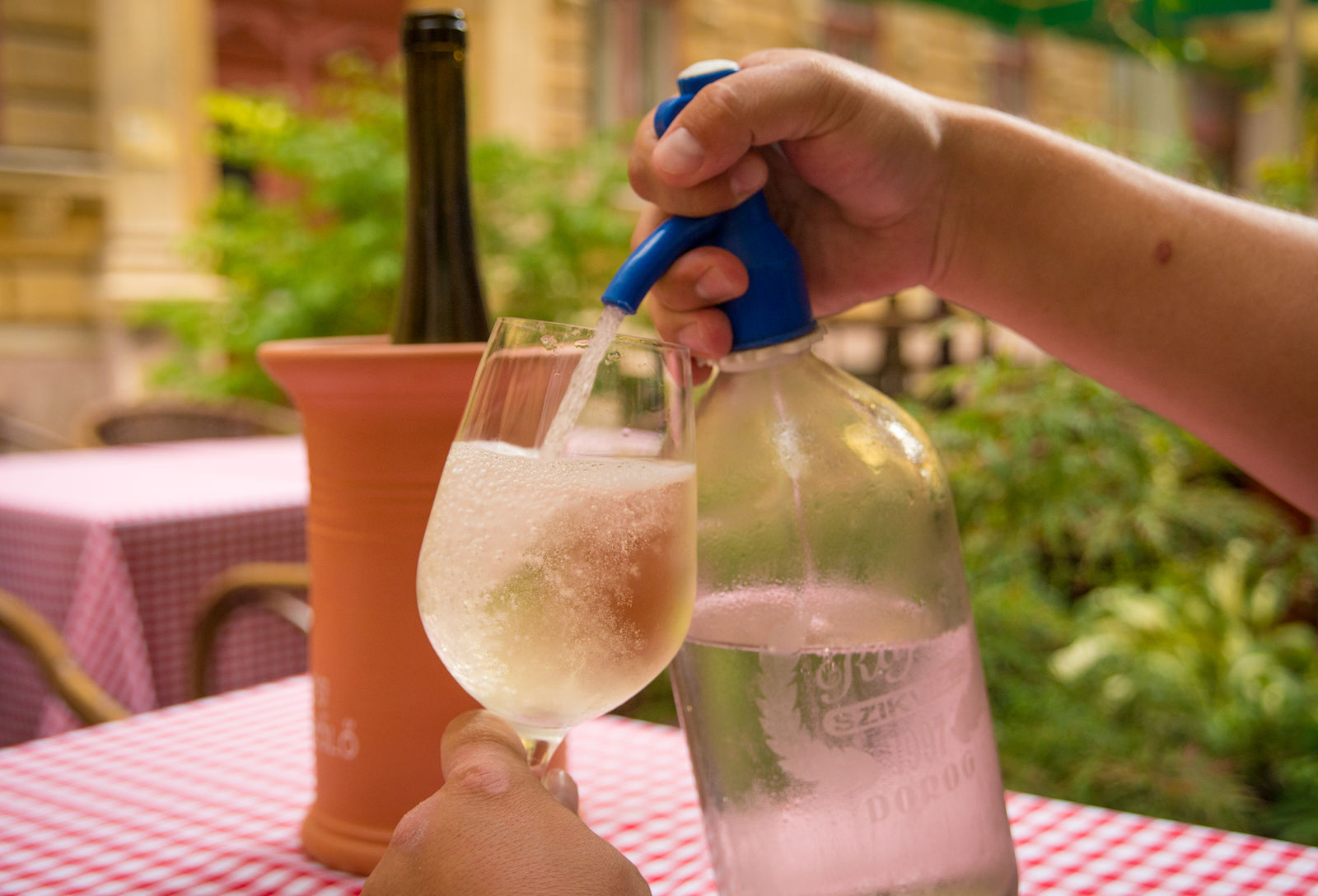 Deák fröccs: 1 pohár szódavíz + egy cseppnyi bor