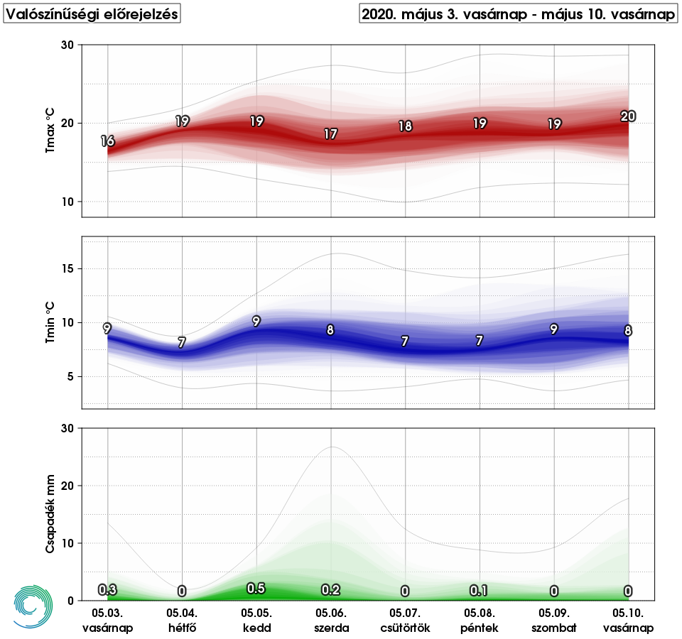 Jellemzően 10 és 20 mm közötti összeg várható országosan, bár a záporos jellegből adódóan nagyobb területi különbségek is lehetnek. A héten is gyakran várható napközben megélénkülő szél, a hétvégén sokfelé erős lökésekre is számítani lehet. A hőmérséklet csütörtökig 20 fok fölött tetőzik a délutáni órákban, majd péntektől 15-20 fok közötti maximumok lesznek jellemzőek. Az éjszakai fagyok a fagyzugos területeken is megszűnnek, az eddigieknél enyhébb éjszakákra számíthatunk.