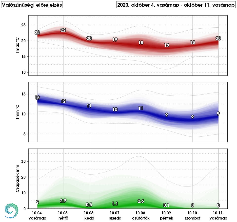 A jövő hét első felében is többször kell számítani elszórt záporra, zivatarra, de tartósan esős idő nem valószínű. Összességében jövő szerdáig többnyire 5-15 mm csapadék várható az országban, de északkeleten ennél jóval több is eshet. Továbbra is gyakran lesz szeles az idő, ezúttal délies irányból várható erős, helyenként viharos szél. A hőmérséklet szombatig emelkedik, akkor délkeleten akár 30 fokig is melegedhet a levegő. Vasárnaptól több fokos lehűlés várható, de a jövő hét első felében sem lesz hűvös idő.