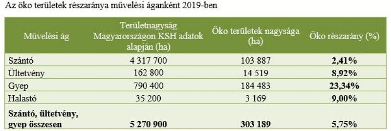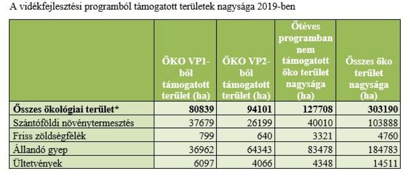 Hazánkban az ötéves öko VP 1-2 program támogatásai jelentősen hozzájárultak ahhoz, hogy hazánkban 5 év alatt megduplázódott az ökológiai termelésbe vont területek nagysága. Az uniós statisztikák szerint Magyarország 2018-ban 209 ezer hektárral Észtországhoz és Portugáliához hasonlóan 1,6%-kal részesedett a közösség ökológiai gazdálkodásba bevont mezőgazdasági területéből, azonban 2019-re ezen területek nagysága már 303 ezer hektár volt, amelyen több, mint 5600 vállalkozó folytatott termelést.