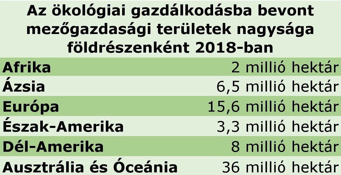 Bár azt gondolnánk, hogy a világ legszegényebb országaiban használják a legkevesebb kemikáliát, azonban ez nem így van – igaz ennek köze lehet a világ népességének eloszlásához is. A KSH nemrégiben közzétett, 2018-as adatai szerint azonban a legkevesebb ökológiai gazdálkodásba vont terület Afrikában van, mindössze 2 millió hektár.