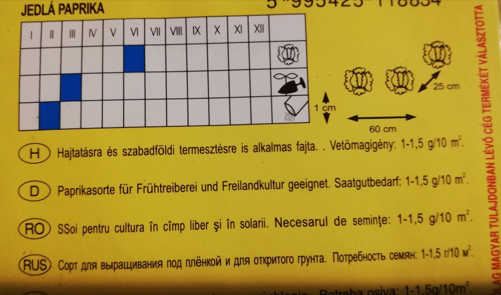 A csomagoláson képekkel, piktogramokkal sok mindent jelölnek, ez jó, mert azonnal értelmezhető az üzenet. Rajta szokott lenni – képekkel illusztrálva – a vetési idő, illetve hogy szabadföldbe vessük, vagy fagymentes helyre, és utána palántázzuk-e?
