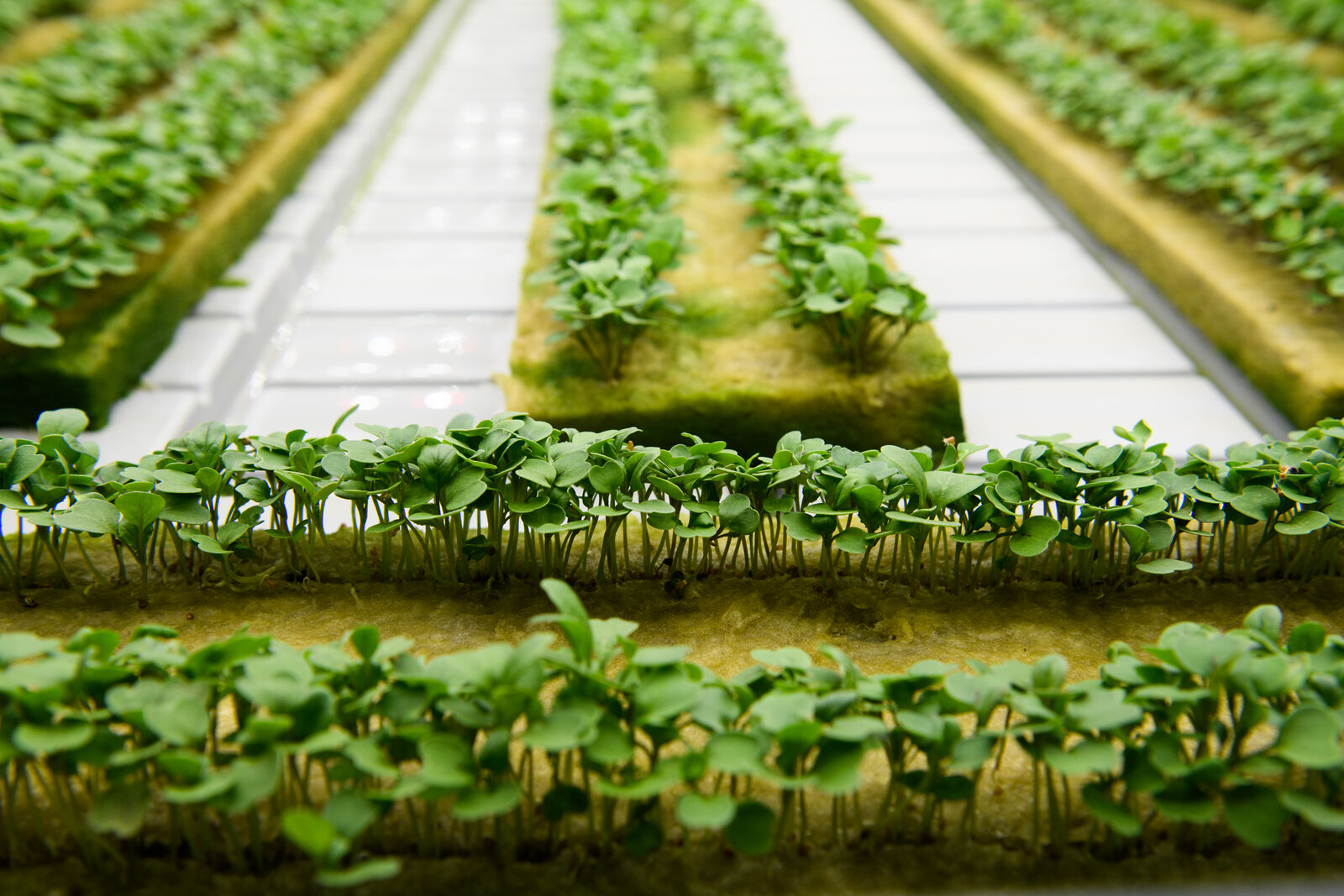 A Tungsram újpesti telephelyén létrehozott beltéri farmon 150 négyzetméteren folyik hidropóniás mikrozöldség- és salátatermelés kizárólag mesterséges megvilágítással. Emellett két kisebb klímakamra szolgálja a kutatási tevékenységet.