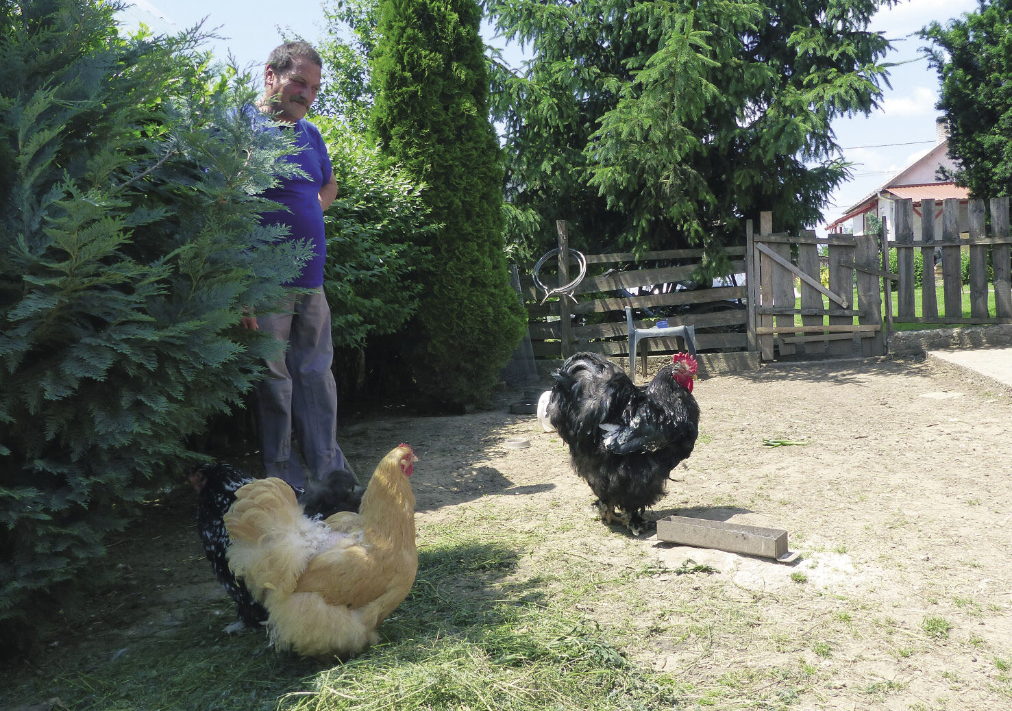 A betegsége ellenére is munkát vállaló gazdának rengeteg a tennivalója. Összesen egy hektárnyi területet kezel. Gyümölcsöse és háztáji veteményese mellett lucernát termel az állatoknak, de bőven van hely a szárnyasok számára is.