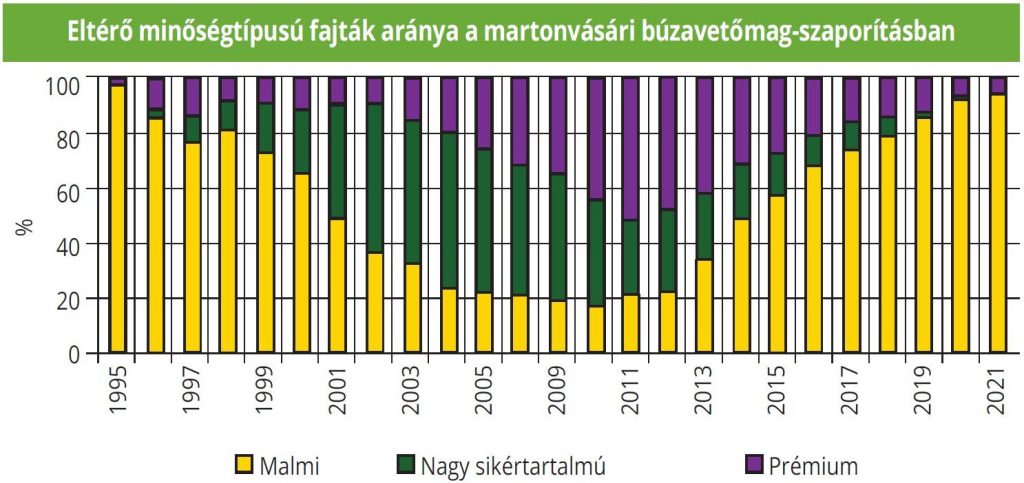 Az immár több mint 50 éve eredményes martonvásári búzanemesítők mindig szem előtt tartották az aktuális és a közeljövőben várható piaci igények alakulását, melynek során a különböző minőségi kategóriákat képviselő fajtáik eltérő arányban vettek részt a vetőmag-szaporításban – és az áruelőállításban. Ennek példájaként már az 1990-es években gyorsan tudtak reagálni a drasztikusan lecsökkent tápanyag-utánpótlás okozta sütőipari minőségvesztés kihívásaira (nagy sikértartalmú fajtákkal), valamint, egy évtizeddel később, az európai közös piachoz való csatlakozásunk által generált új, igényesebb piaci elvárások kielégítésére is.