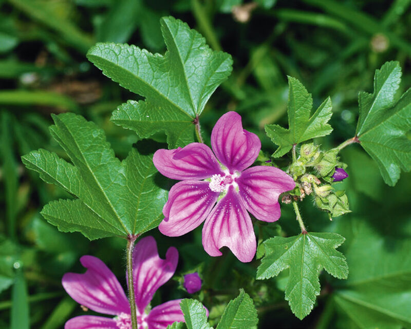 Az egyéves papsajtmályva (Malva neglecta) pirosló és az évelő érdes mályva (Malva alcea) rózsaszín virágai késő őszig díszítenek. A halványsárga egyéves varjúmák (Hibiscus trionum) lassan eltűnőben van, pedig volna vele dolgunk. Ahol még vannak állományai, nagy felületű kék színfoltot ad a közönséges kígyószisz (Echium vulgare). Az évelő ligeti zsályára (Salvia nemorosa) mézelő növényként számíthatnánk. A lila ökörfarkkóró (Verbascum phoeniceum) legjobb jelzőnövénye a pókbangó (Ophrys sphegodes) virágzásának. A bujdosó mák (Papaver dubium) szép fehér vagy vörös színben nyílik. A sövényszulák (Calystegia sepium) az esztétikailag zavaró drótkerítésekre futtatva teljes virágzásban gyönyörű takarást ad. A közönséges fehér virágú cickafark (Achillea millefolium) esetében felmerül, vajon lehet-e a piros sziki cickafarkkal (Achillea aspleniifolia) hibridizálni. Amennyiben az megtörténne, rózsaszín virágú évelő egyedek is kialakulhatnak. A fehér szamárkenyér (Echinops sphaerocephalus) a szárítható évelő virágok körét gyarapítaná. Augusztusban nyílik az ékes vasvirág (Xeranthemum annuum), a nyári vázába szedhető. A mezei katáng (Cichorium intybus) októberig nyíló kék virágú évelő. A kék búzavirág (Centaurea cyanus) már védelemre szoruló növény Békés megyében.