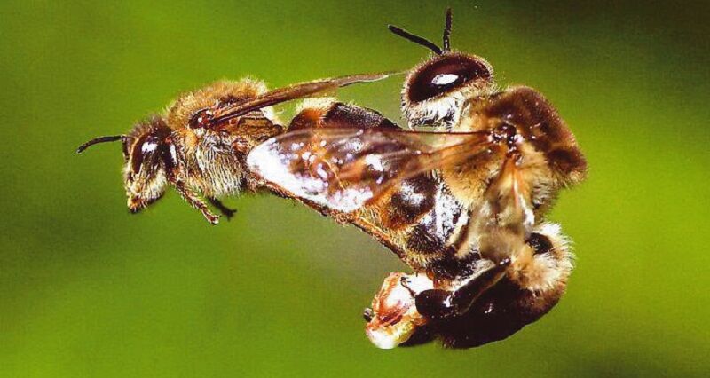 Az 1990-es években Németországban történt videokamerás megfigyelés alapján nyilvánvalóvá vált a párzás menete (1. kép). A here az anyát a levegőben repülve, felülről közelíti meg, majd lábaival megragadja. Potrohát behajlítja, majd ivarszervét az anya felemelt potrohának hüvelynyílásához illeszti. Így repülés közben történik meg az ondó kilövellése. Az aktus végén a here kimerül, tehetetlenné válik, az anya igyekszik megszabadulni tőle. A here párzószerve azonban olyan szorosan illeszkedik az anya hüvelynyílásába, hogy szétválásuk közben kiszakad. Miután az anya megszabadul a here élettelen testétől, visszatér kaptárjába.