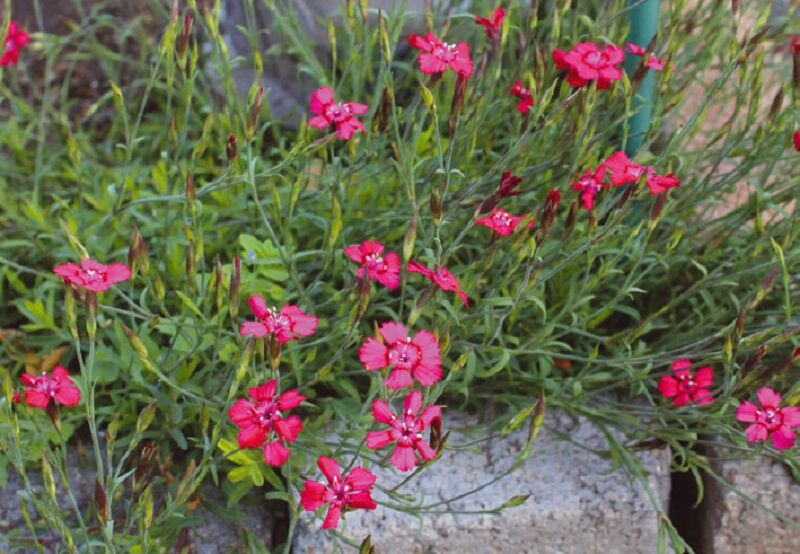 Tavaszi ködvirág (Erophila syn Draba verna), tarlóhere (Trifolium arvense), mezei szegfű (Dianthus deltoides).