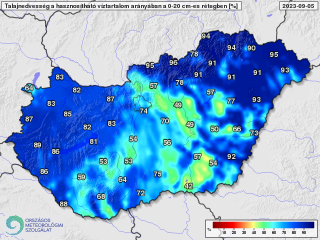 A felszín közeli talajréteg az ország túlnyomó részén megfelelő mértékben tartalmaz nedvességet, különösen az északkeleti országrészben bőséges a felső 20 cm víztartalma. A középső és mélyebb rétegek főként az Alföldön szárazabbak, többfelé kritikusan szárazak, de az év ezen időszakára általában ez a jellemző.
